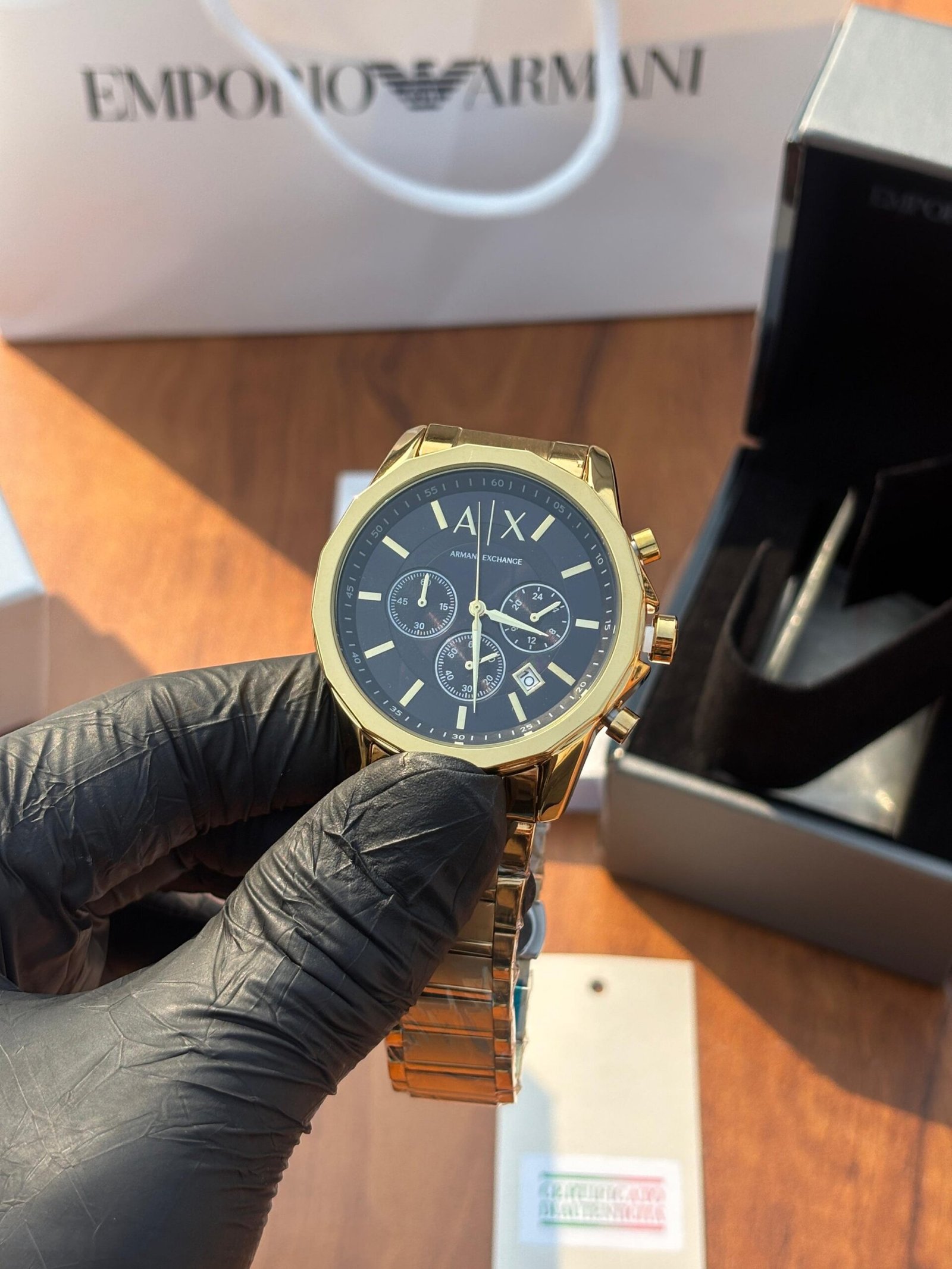ARMANI EXCHANGE GUNMETAL GOLD BLACK DIAL